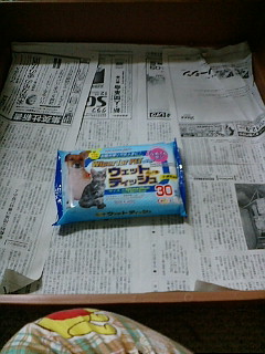 新聞紙を敷いて、上に消臭砂を新聞紙がわりと見えるくらい少なめに散らします。