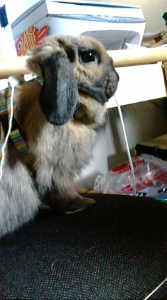何度か着せて慣れているのですが、今日は興奮して暴れるのでテリトリー範囲外の廊下でつけました。
