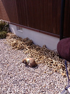 サトさんのお散歩場所は、家の芝生と敷地内の砂利道です。
